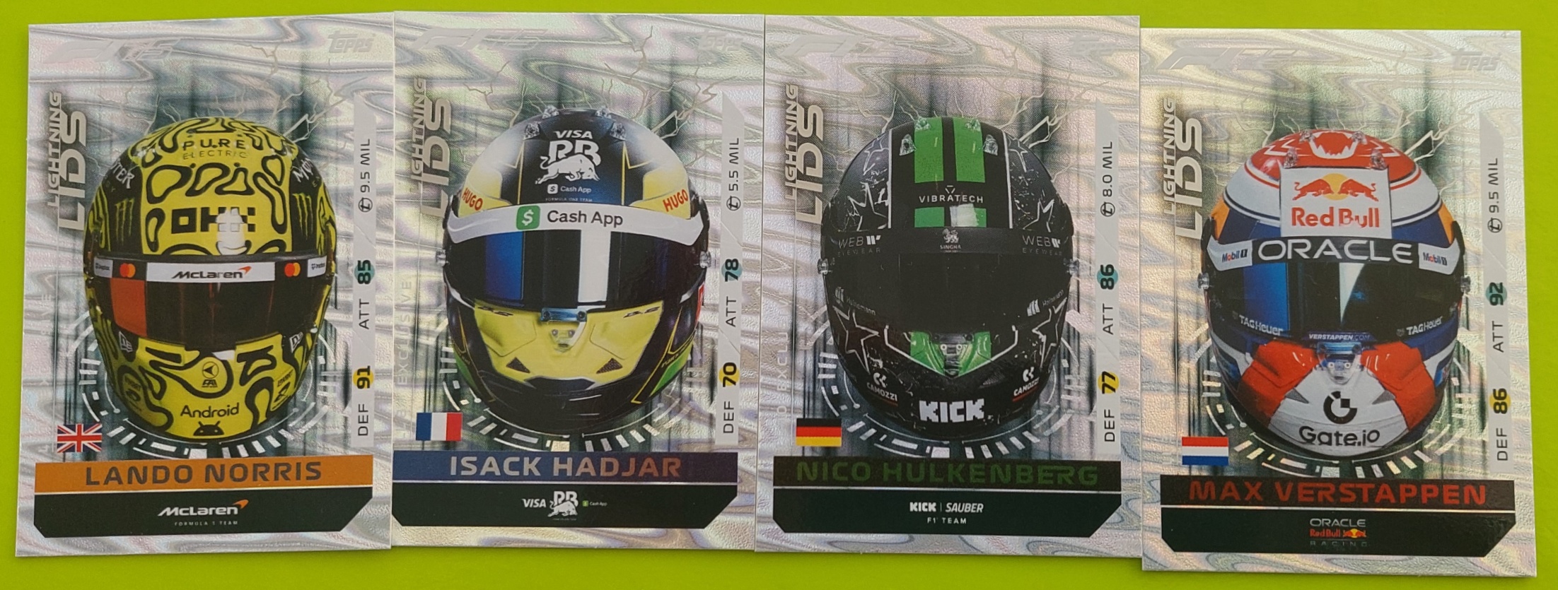 These are the special Topps F1 Turbo Attax 2025 Lightning Lids cards that you can find only in the Lightning Lids Mega Tin: